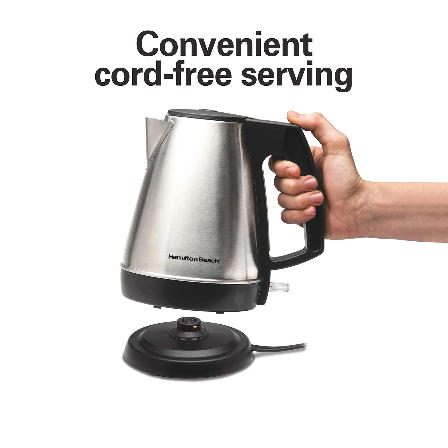 Heat water faster than in a microwave and safer than on a stovetop with just a push of a button. The Hamilton Beach® Electric Kettle’s powerful rapid-boil system provides heat quickly, so you’ll have boiling water ready in minutes. Cord-free serving with an easy-pour spout makes sharing simple and convenient. And with a 1 liter capacity, there’s enough for the whole family. The automatic shutoff feature with boil dry protection keeps the kettle from scorching.