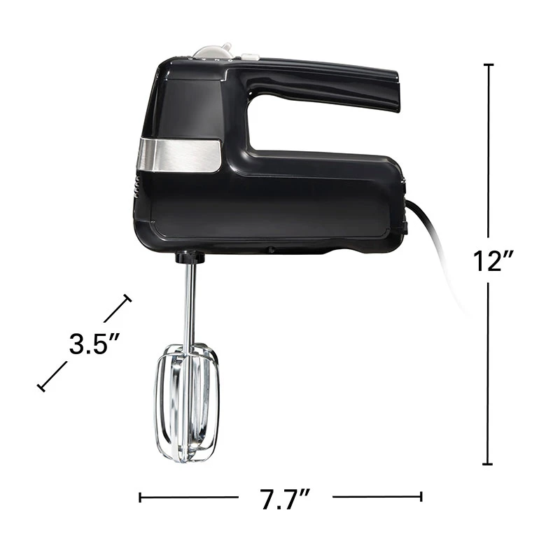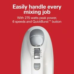Powerful mixing is achieved with the 300 watt peak-power motor, so you can quickly and easily prepare all your favorite recipes. The Bowl Rest™ feature conveniently stabilizes the mixer on the edge of the bowl to free your hands to add ingredients, and the mixer’s ergonomic handle ensures comfortable mixing from start to finish. After mixing, a simple press of the speed dial releases the attachments, which are dishwasher safe for easy cleanup. From Hamilton Beach, America’s #1 hand mixer brand.*