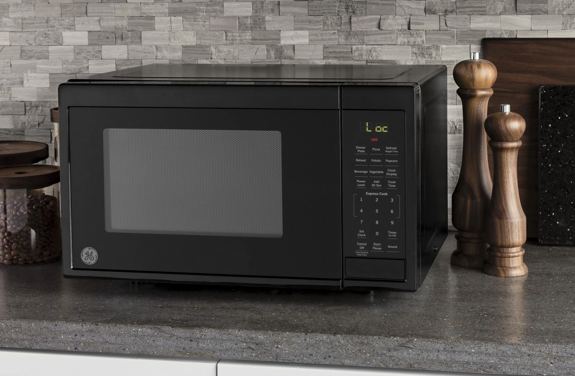0.9 cu. ft. Countertop Microwave Oven with Convenience Cooking ControlsMake life a little easier with this countertop microwave oven from GE. A variety of convenient cooking controls such as Popcorn, Potato, Beverage, Reheat, Vegetable, Dinner Plate or Pizza, make meal time a breeze. With auto and time defrost, defrosting times and power levels are programmed automatically or manually for optimal results. For added safety, this appliance comes with control lockout to help prevent accidental activation.About GEGE Consumer and Industrial spans the globe as an industry leader in major appliance, lighting and integrated industrial equipment systems and services. They provide solutions for commercial, industrial and residential use in more than 100 countries which uses innovative technologies and “ecomagination.” It’s a GE initiative to aggressively bring to market new technologies that help customers and consumers meet pressing environmental challenges to deliver comfort, convenience and electrical protection and control. GE brings imagination to work.