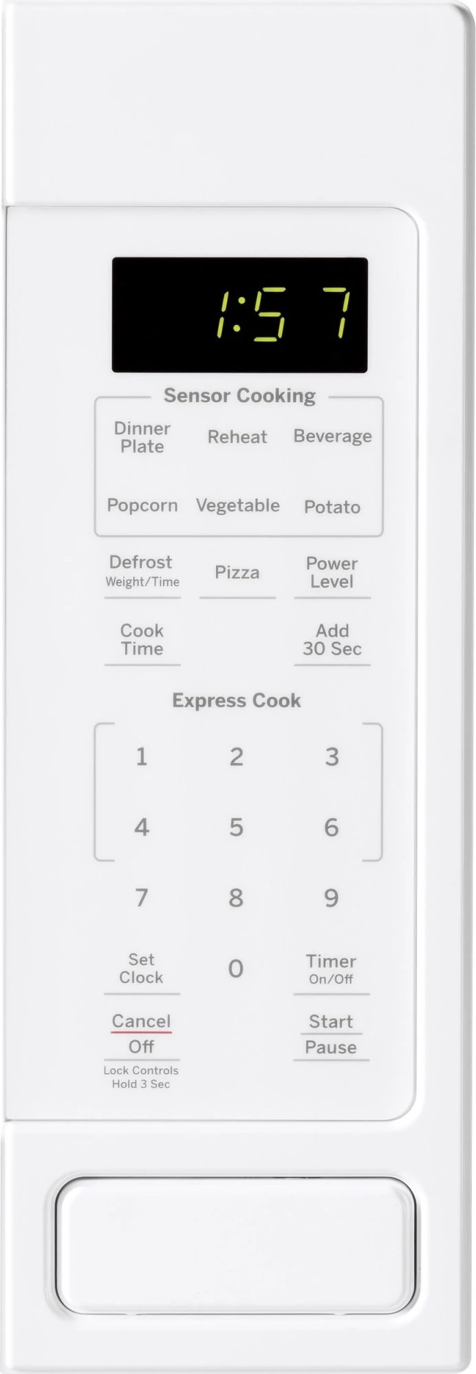 1.6 cu. ft. Countertop Microwave Oven with 1,150 Cooking WattsThis countertop microwave from GE features sensor cooking controls that automatically adjust time and power for delicious cooking results. Defrosting is easy with the weight and time defrost option. Simply enter the weight of the food and let the microwave automatically set the optimal defrosting time and power level, or you can also set your own desired time for defrosting! And if you need a little more time, add 30 extra seconds to your cooking time with one touch. This appliance also provides the safety you need with a control lockout feature that prevents accidental activation of your microwave.About GEGE Consumer and Industrial spans the globe as an industry leader in major appliance, lighting and integrated industrial equipment systems and services. They provide solutions for commercial, industrial and residential use in more than 100 countries which uses innovative technologies and “ecomagination.” It’s a GE initiative to aggressively bring to market new technologies that help customers and consumers meet pressing environmental challenges to deliver comfort, convenience and electrical protection and control. GE brings imagination to work.