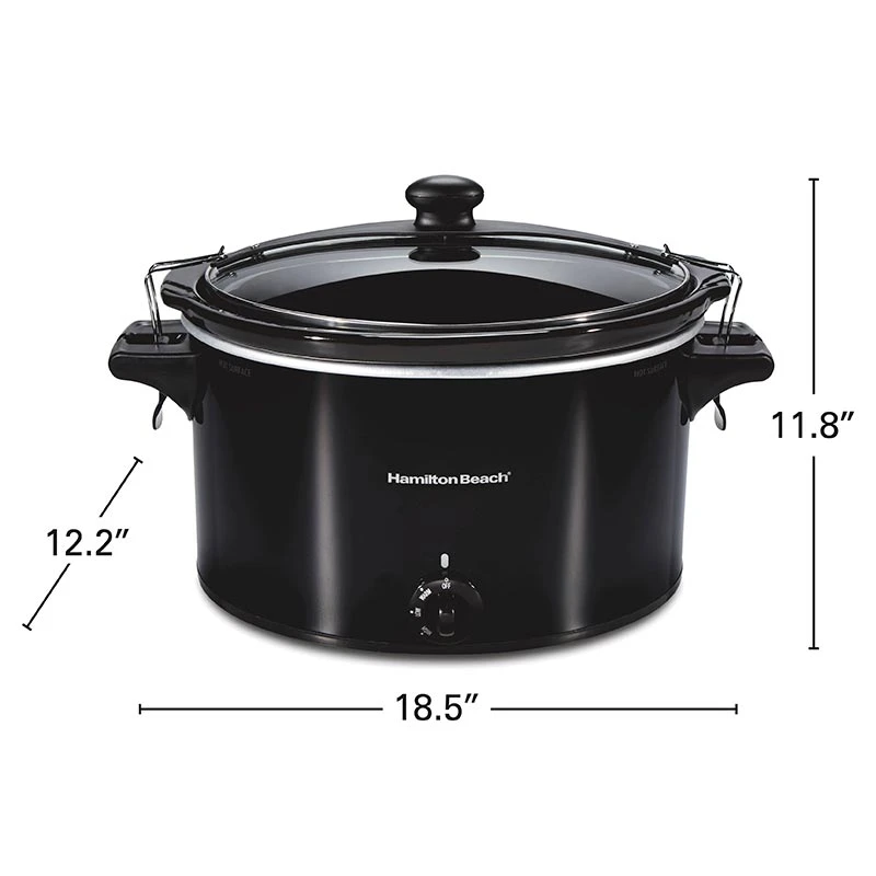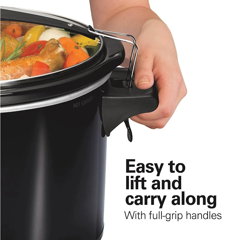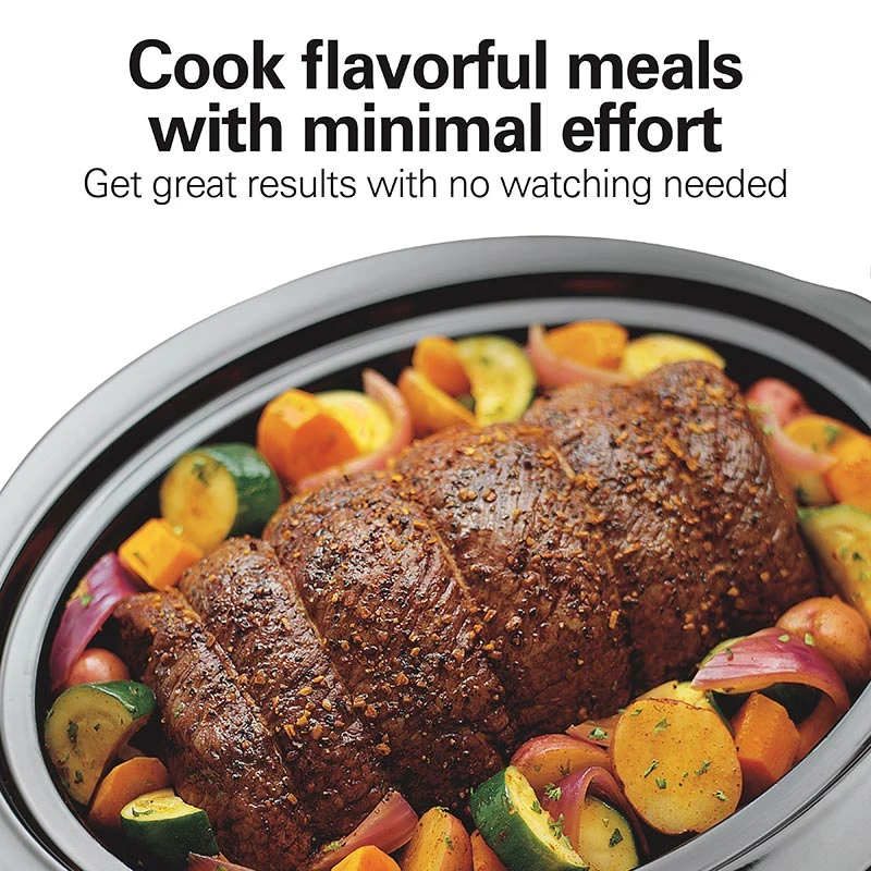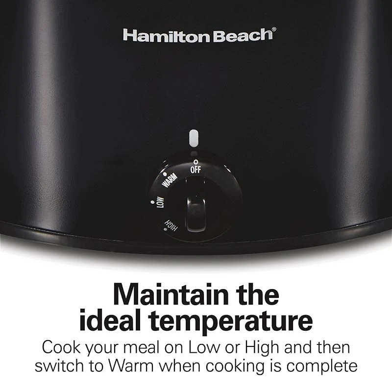 The Hamilton Beach® 10 Quart Slow Cooker’s extra-large capacity is perfect for everything from game-day chili to your holiday pot roast. The oval shaped stoneware crock can fit up to a 10 lb. turkey or 12 lb. roast. This slow cooker features low and high cook settings and a warm setting, ideal for buffets or when dinner ends up later than you planned. Full-grip handles make it easy to carry, and both the stoneware and glass lid is dishwasher safe. Extra Large Capacity This slow cooker is just the right size for feeding a crowd at a potluck or tailgate, making dinner for a large family, or batch cooking. The oval-shaped crock can fit a variety of foods, such as a 10 lb. turkey or a 12 lb. roast. 3 Temperature Settings Cook your meal on Low or High; if your meal is done cooking before you’re ready to serve it, switch to Warm so it maintains its temperature. Easy to Transport The clip-tight sealed lid prevents messy spills, while the full-grip handles make carrying the slow cooker to the serving table easy. Quick Cleanup The removable stoneware crock and glass lid are both dishwasher safe, making cleanup a breeze. Hamilton Beach® products are thoughtfully designed to make your life easier. We use consumer insights, in-depth research and rigorous testing to deliver the best solution to your everyday needs. Whether it’s preparing delicious meals and beverages effortlessly, or making your clothes look their best, you can count on the brand that has spent over 100 years creating products with you in mind.