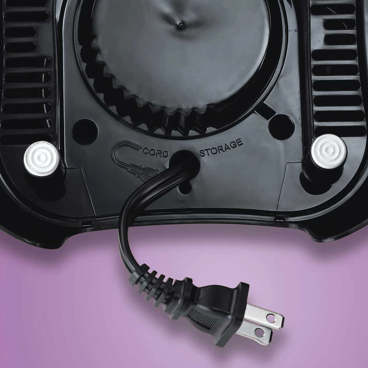 With 12 blending functions, you’re sure to find the right setting for a creamy milkshake or frozen daiquiri. It can also whip up sauces, dressings and purees. The patented Wave-Action system works to continuously pull mixture down into the blades for smooth results. This multi-function blender & chopper also features a unique no-mess pour spout with a hinged cap for easy pouring. Both the jar and blade is dishwasher safe. When finished, the cord easily fits into the bottom of the blender for space-saving storage.