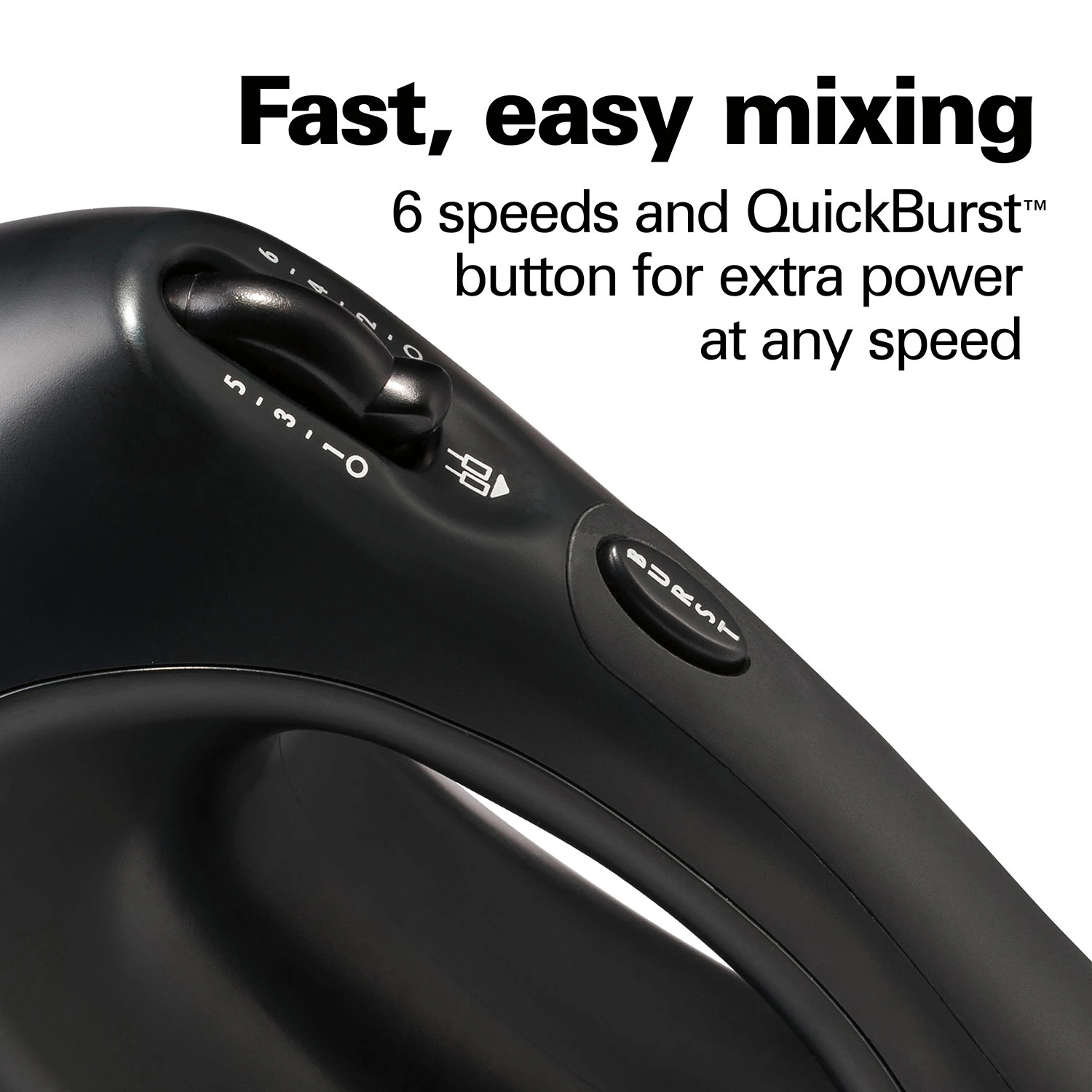 This versatile hand mixer has 6 different speeds to handle every mixing jog, plus a QuickBurst™ button to give you a an extra burst of power at any speed.