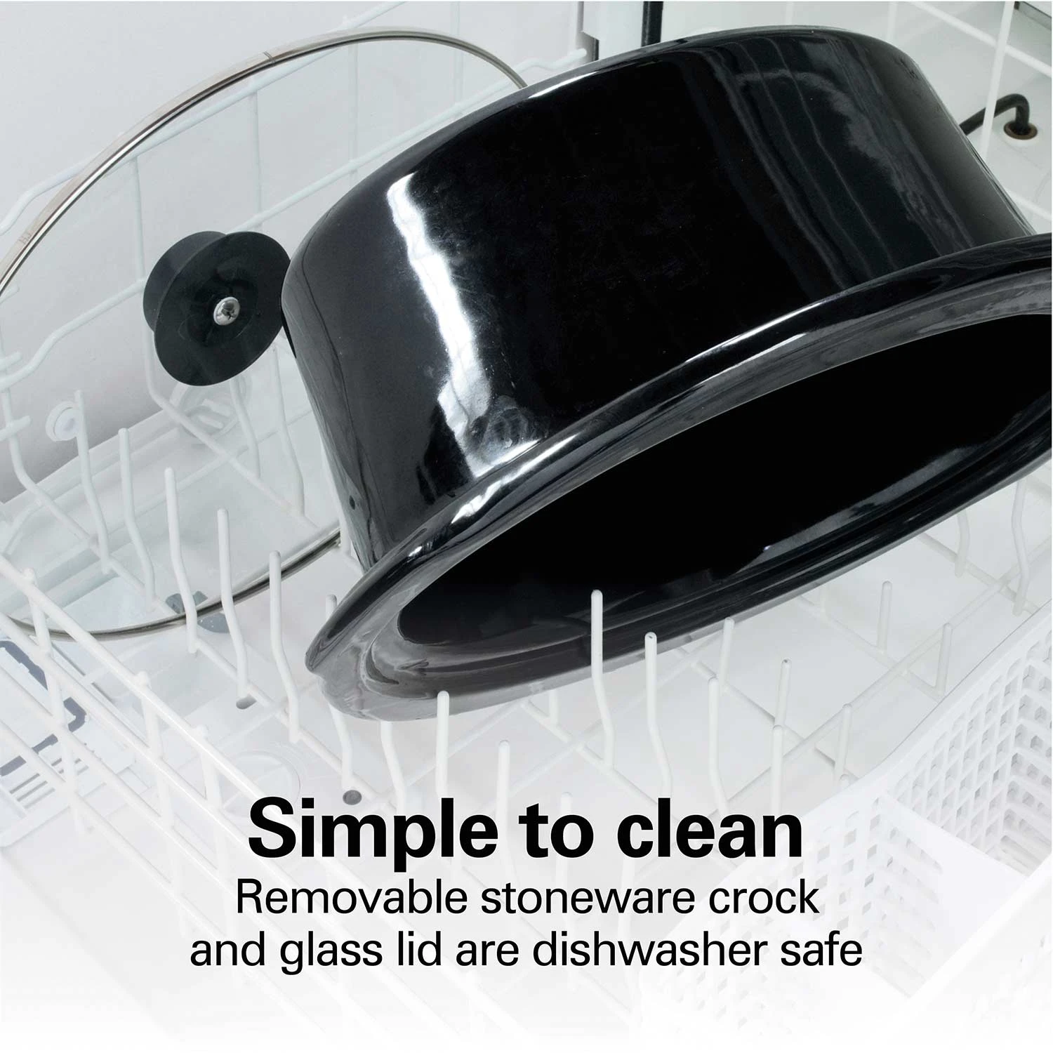 This slow cooker has a removable stoneware crock and glass lid that are dishwasher safe and easy to clean.
