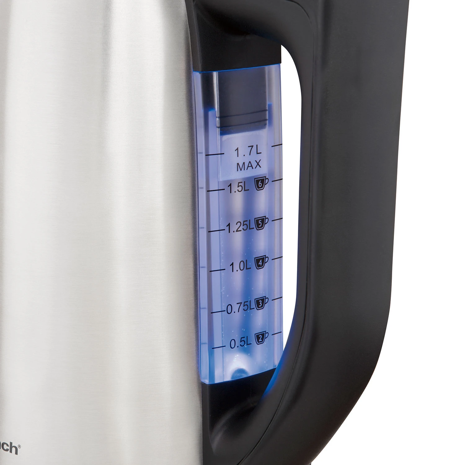Easily see how full the kettle is through the large water window while soft blue LED lights illuminate the interior.
