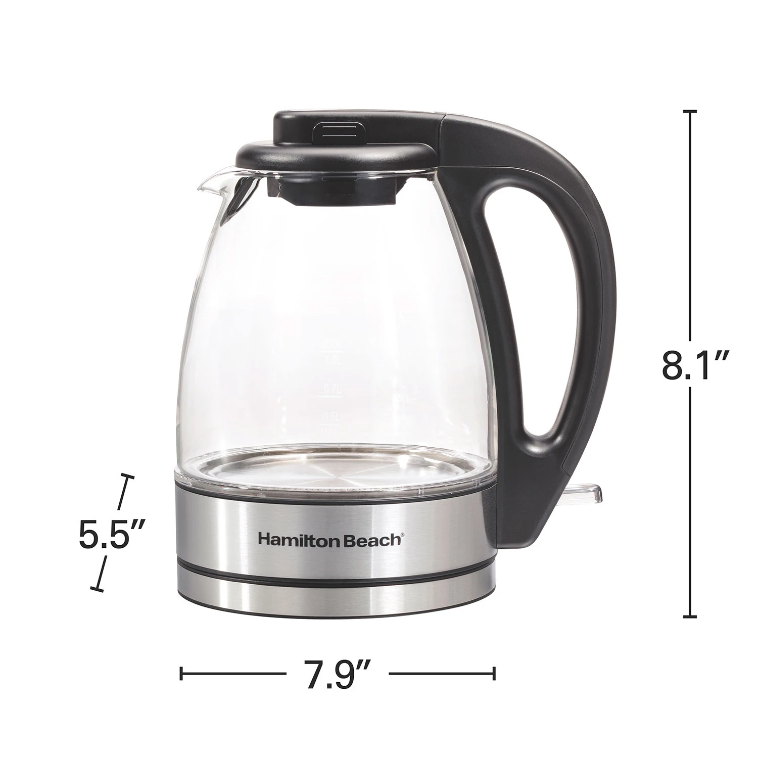A shortage of storage space shouldn’t keep you from the convenience of an electric kettle. With the 1-liter design of the Hamilton Beach Compact Glass Kettle, it’s quick and easy to enjoy tea, pour-over coffee, hot chocolate, soups and more in minutes, without compromising valuable counter space. Plus, it has an attractive design that looks great in any kitchen. Fast and Safe The Hamilton Beach Compact Glass Kettle quickly boils water for tea, pour-over coffee and hot cocoa quicker than a microwave can do the job; built-in safety features like automatic shutoff and boil-dry protection make it safer than boiling a kettle on the stovetop. Space-Saving Design The 1-liter vessel is the perfect size for tight quarters like apartment kitchens, dorm rooms or smaller households. Cord-Free Convenience The kettle can be removed from its base and carried anywhere hot water is needed. Integrated Cord-Wrap A convenient cord wrap below the base keeps the power cord neatly tucked away. Built-In Filter An anti-scale mesh filter around the lip of the kettle is removable, allowing for easy cleaning. Measurement Marks Measurements are labeled on the side of the kettle for quick reference when precise amounts of water are needed. Hamilton Beach products are thoughtfully designed to make your life easier. We use consumer insights, in-depth research and rigorous testing to deliver the best solution to your everyday needs. Whether it’s preparing delicious meals and beverages effortlessly, or making your clothes look their best, you can count on the brand that has spent over 100 years creating products with you in mind.