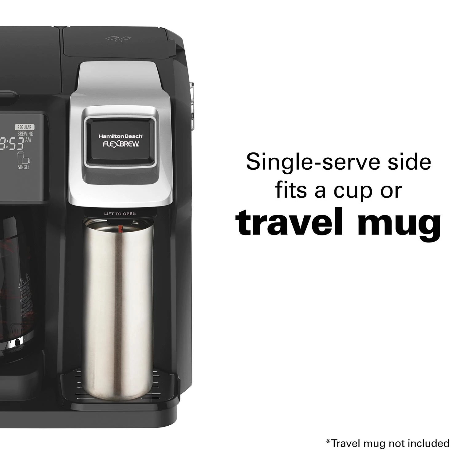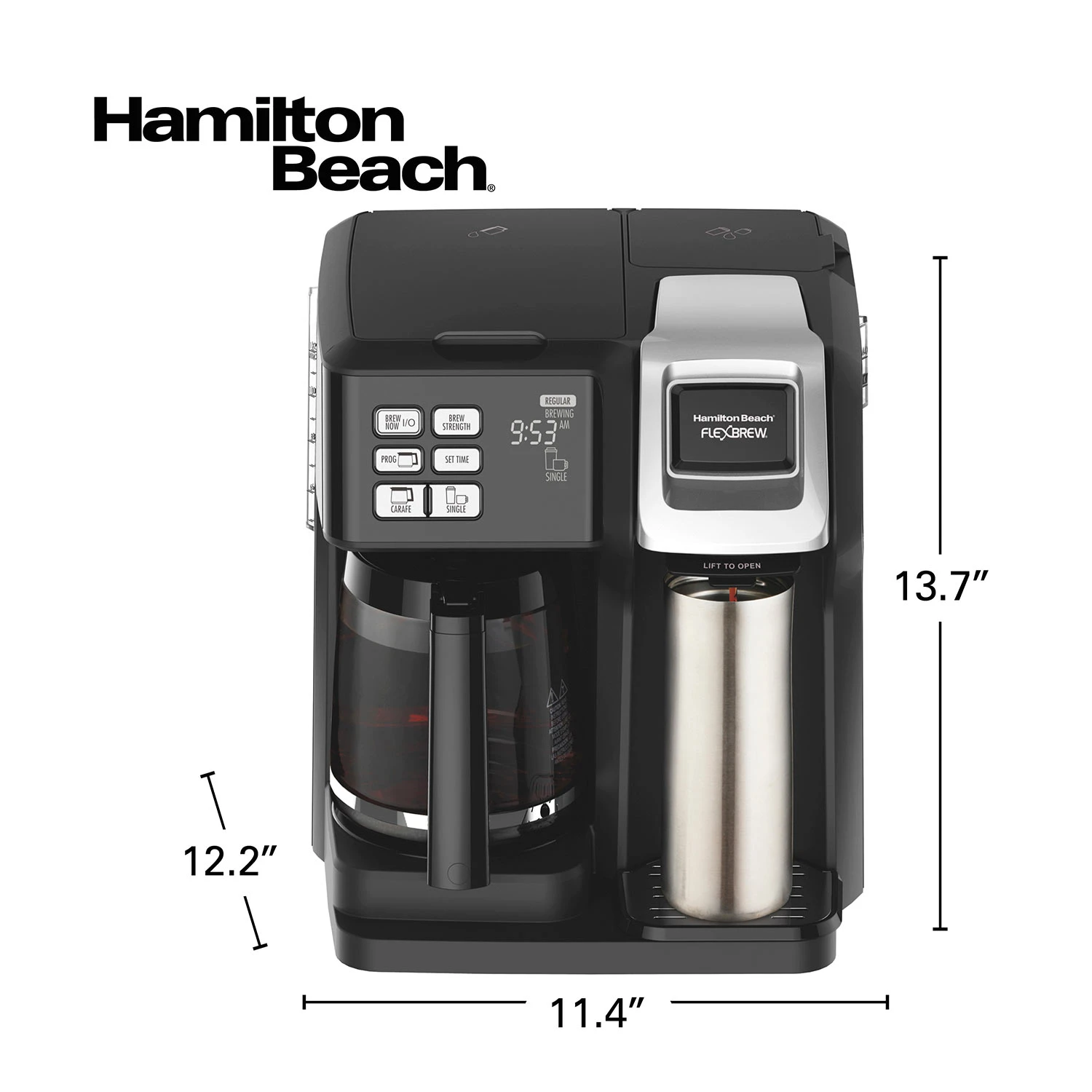 No two coffee drinkers are the same – so when you make coffee at home, the flexibility to customize how and what you brew is key. From fresh grounds to K-Cup®* pods, the Hamilton Beach® FlexBrew® 2-Way Coffee Maker gives you the options to please fans of all types of coffees and quantities. This combo coffee maker lets you brew a full pot using your favorite grounds on the carafe side, or make a cup for yourself using a single-serve pod or grounds on the single-serve side. Each side has an easy-fill water reservoir with separate windows, so there’s never any confusion or over-filling. You can also choose between regular or bold brew strength on both sides. The full-pot side brews up to 12 cups of coffee using grounds. It includes a permanent filter, a programmable clock with 2-hour keep warm cycle, automatic pause and serve and automatic shutoff. The single-serve side can brew up to 10 oz. with a K-Cup®* pod, or 14 oz. travel mug with grounds. A removable cup rest doubles as a storage container for single-serve pods or to hold the brew basket. Two Ways to Brew Enjoy all the perks of a 2-in-1 coffee maker with the Hamilton Beach FlexBrew. This 2-way coffee maker doubles as a single-serve coffeemaker and a full, 12-cup pot machine. Easy to Fill Water Reservoirs Each brewer has its own water reservoir that’s easy to fill and features a water window, so you always know which brewer has how much water. Choose Your Brew Strength Get your preferred brew flavor with two brewing strengths – choose from bold or regular. Full Pot Features Programmable to Fit Your Schedule The coffee pot’s digital clock is easy to program and you can set your brew time up to 24 hours in advance. With a 2-hour keep warm cycle with automatic shutoff, you won’t have to wonder if you left the pot on. Auto Pause & Serve Auto pause & serve lets you remove the carafe and pour a cup during the brewing process without any dripping. Permanent Filter The included permanent, gold-tone filter keeps staining at a minimum and eliminates the need for paper filters. Single-Serve Features Brew With or Without Single-Serve pods Whether you’re a steadfast pod user, or prefer your own grounds, you can do either on the single-serve side. A pod holder and single-serve brew basket are included. Cup Rest with Storage Area Use the adjustable cup rest to not only fit your favorite mug in just right, but to also hold the single-serve pod holder or the single-serve brew basket. Easy Cleaning The pod-piercing assembly tool removes for easy cleaning to prevent clogging that can sometimes occur with frequent use. *Keurig and K-Cup®* are registered trademarks of Keurig Green Mountain, Inc. Use of the Keurig and K-Cup®* trademarks does not imply any affiliation with or endorsement by Keurig Green Mountain, Inc. Hamilton Beach products are thoughtfully designed to make your life easier. We use consumer insights, in-depth research and rigorous testing to deliver the best solution to your everyday needs. Whether it’s preparing delicious meals and beverages effortlessly, or making your clothes look their best, you can count on the brand that has spent over 100 years creating products with you in mind.