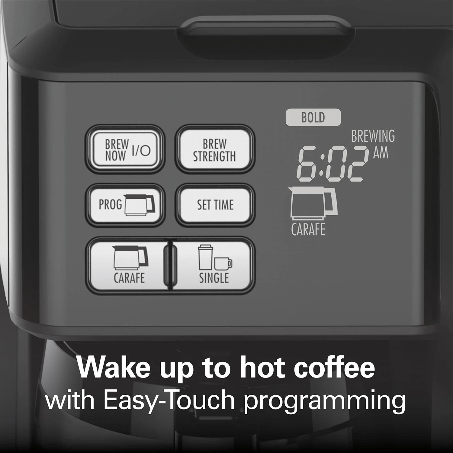 Make every morning easier by waking up to a carafe full of hot coffee. Simply fill the carafe side with water and coffee the night before and set your morning brew time with Easy-Touch programming.