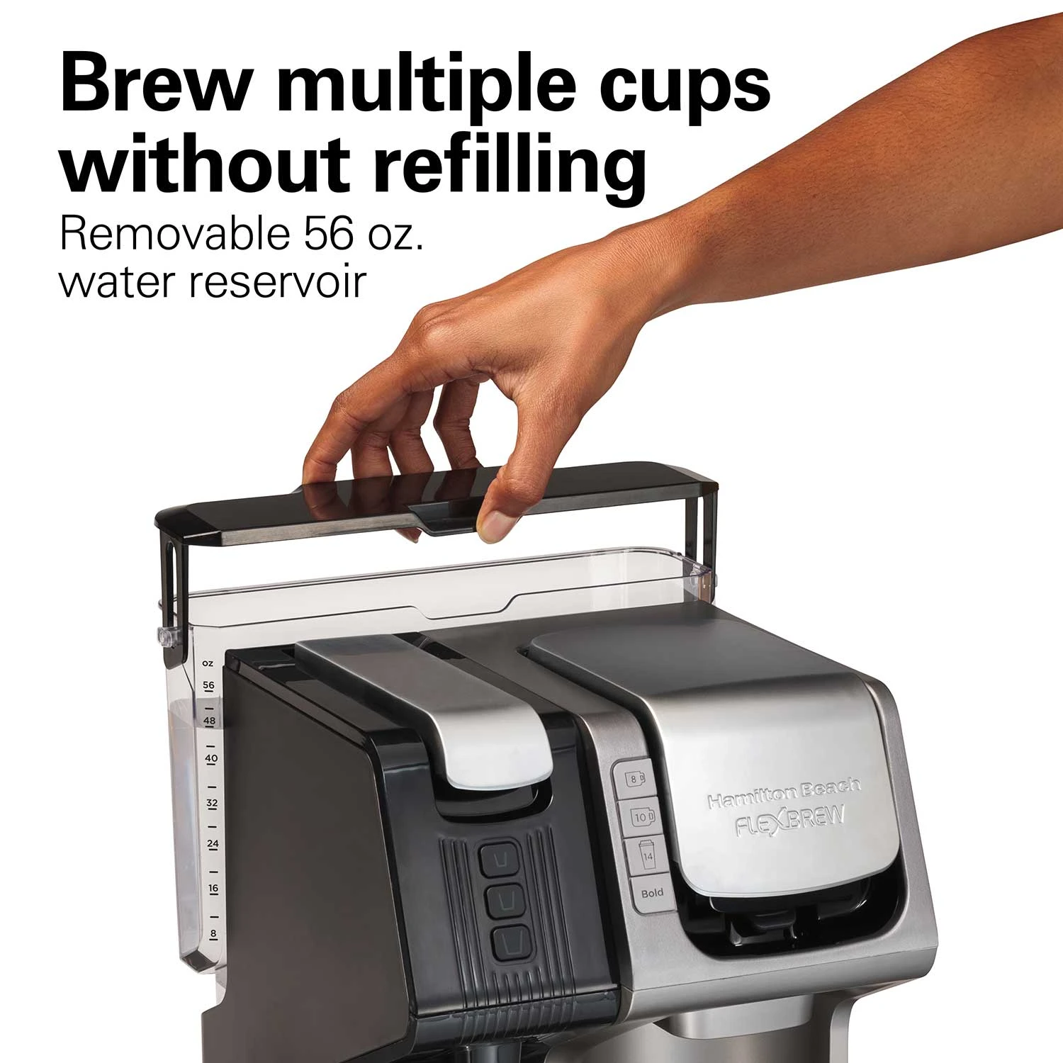 - Brew multiple cups without refilling the 56 oz. water reservoir