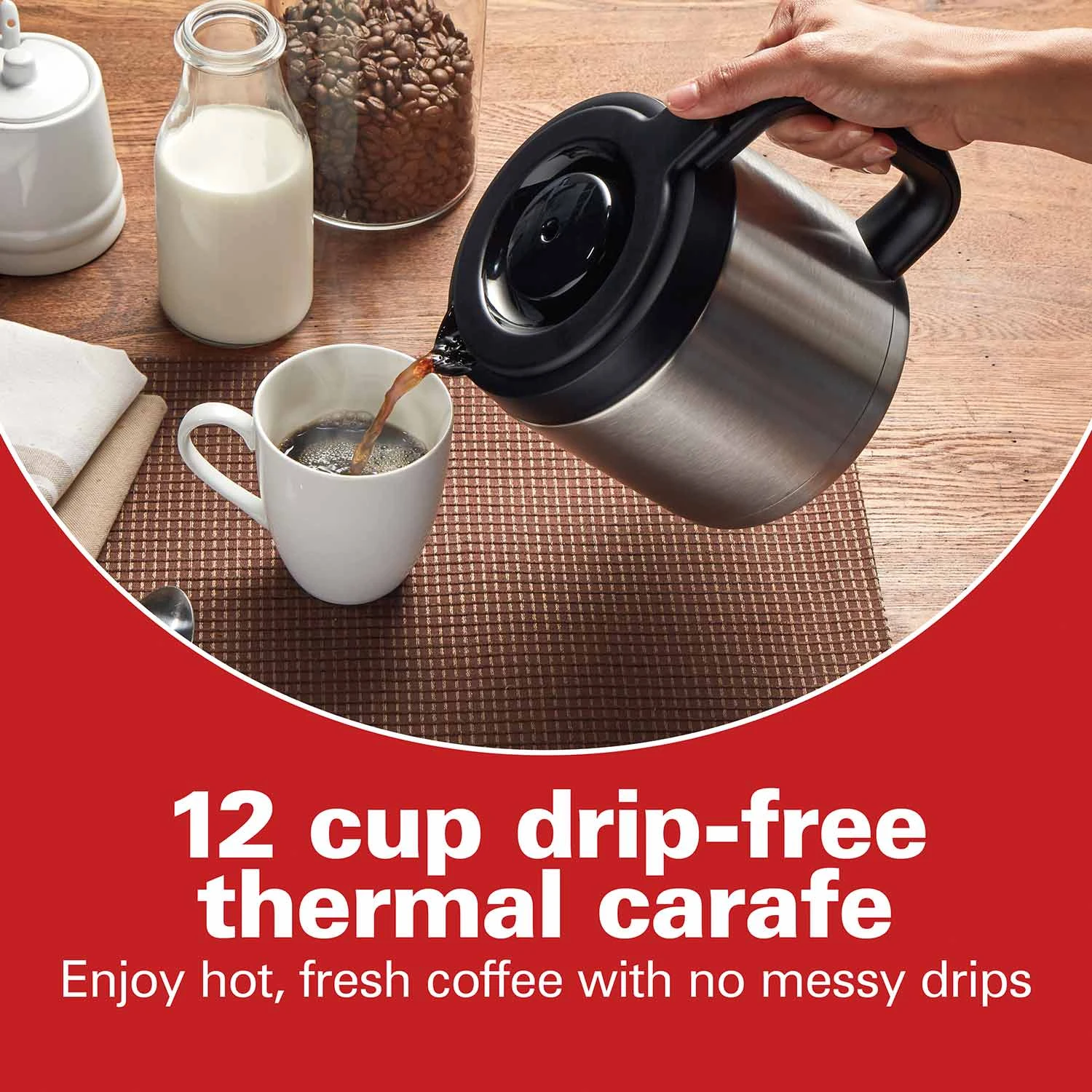 - Extra-large 12 cup thermal carafe with drip-free pouring