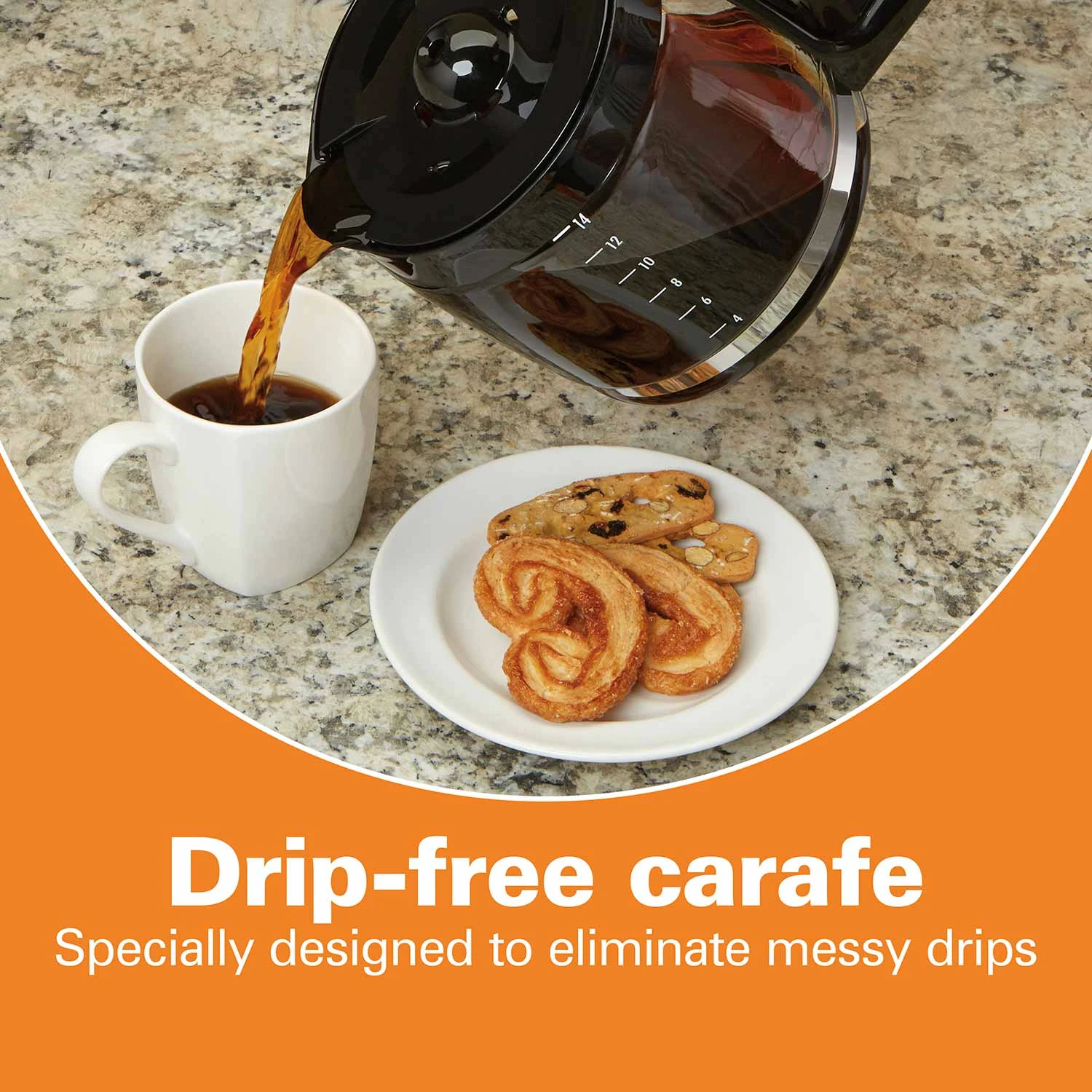 - Extra-large 14 cup capacity with drip-free glass carafe