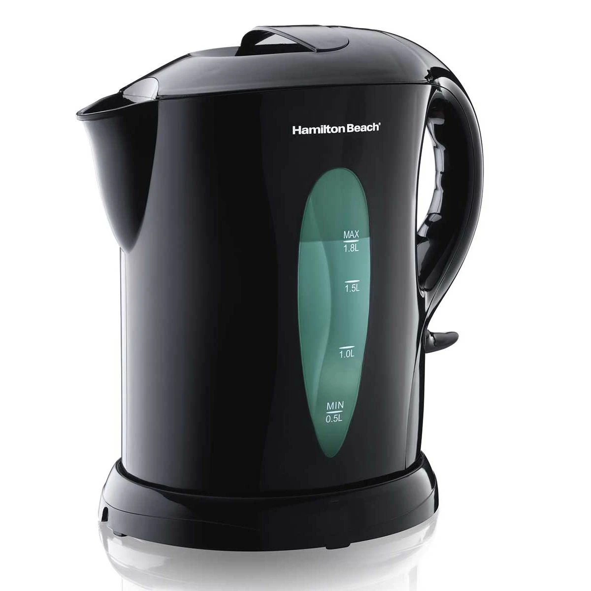 Heat water faster than in a microwave and safer than on a stovetop with just a push of a button. The Hamilton Beach Cordless Kettle’s powerful, 1500 watt rapid-boil system provides heat quickly, so you’ll have boiling water ready in minutes. The automatic shutoff feature with boil dry protection keeps the kettle from scorching. Cord-free serving with an easy-pour spout makes serving simple and convenient. And with a 1.8 liter capacity, there’s enough for the whole family.