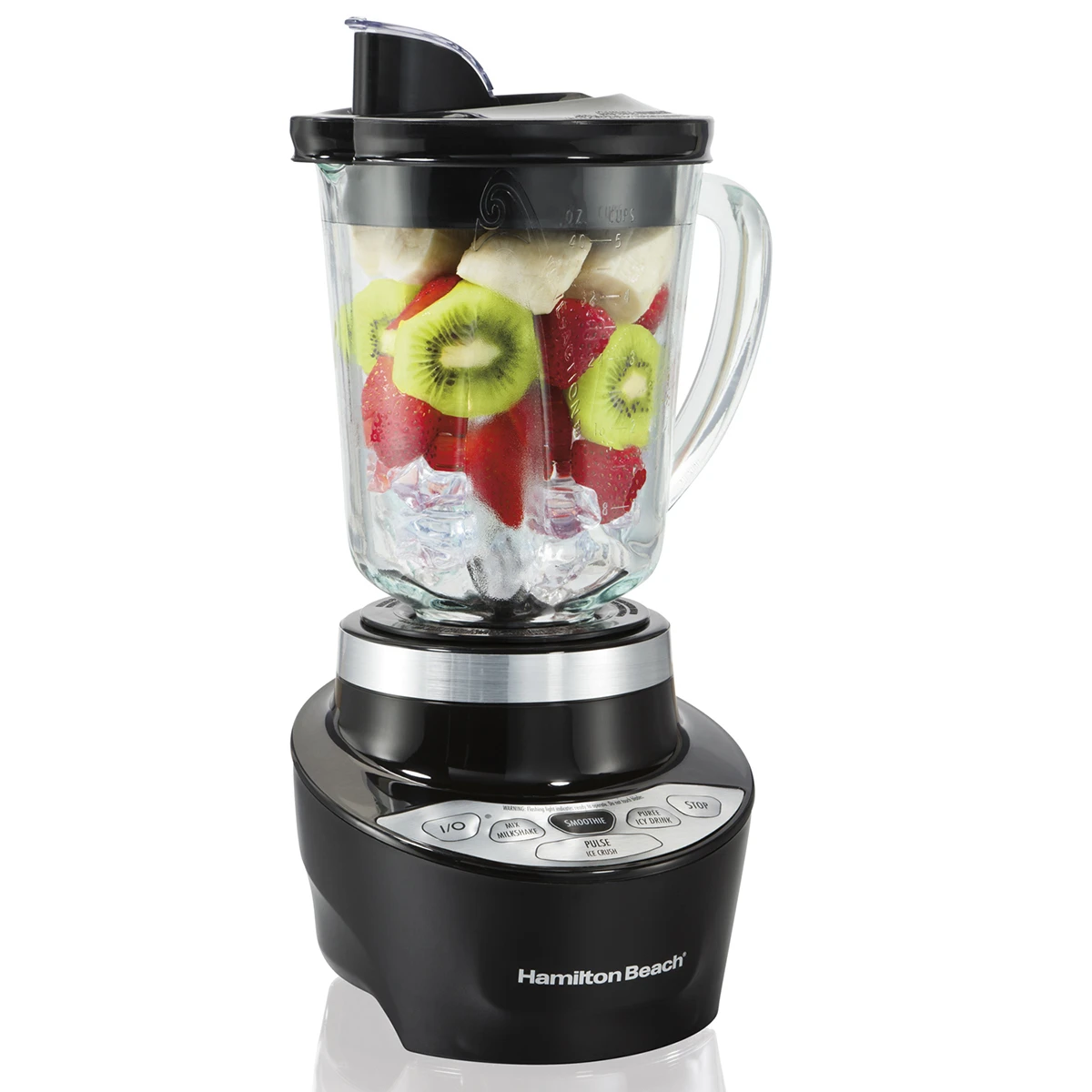To create a smooth texture every time, the Smoothie Smart™ Blender is equipped with the Wave~ Action® System patented by Hamilton Beach. During blending, the Wave~ Action® System is specifically designed to pull the ingredients down into the blades, so there is no need to stop and stir the mixture.