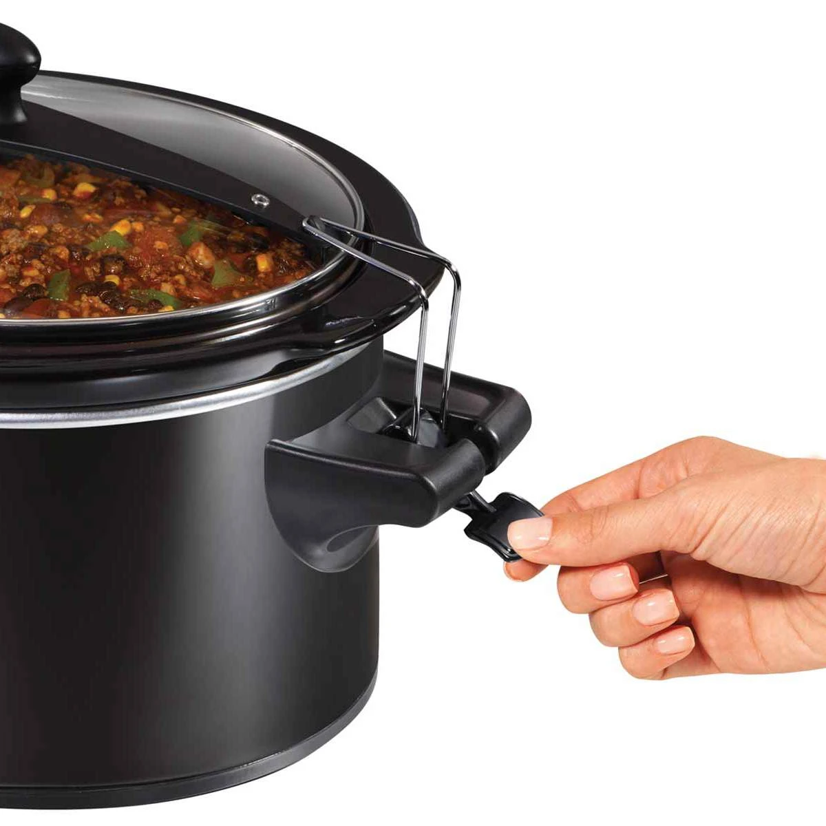 - Clip-tight sealed lid locks onto slow cooker to help prevent messy spills