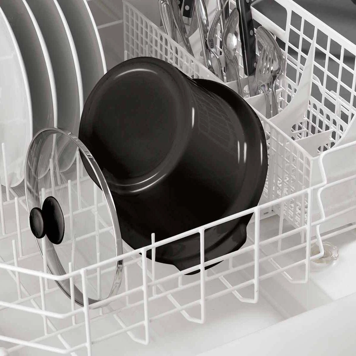 - Removable stoneware and glass lid go in the dishwasher for easy cleanup