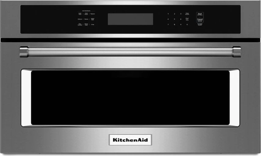 KitchenAid KMBP107ESS 27″ Built-In Microwave, 1.4 cu. ft. 900 W, Convection Cooking, 240 V Hookup