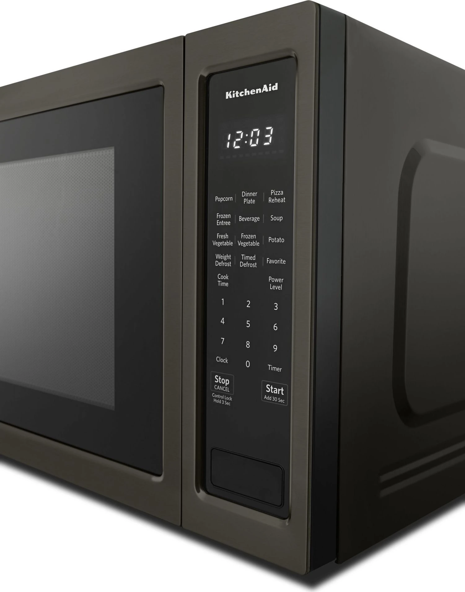 Look beyond the stain-resistant PrintShieldâ„¢ finish and find room to expand your culinary horizons. Our roomiest countertop microwave provides nine precise sensor-driven and pre-programmed cooking cycles, timed defrosting, convenient electronic controls, and LED displays. The 16 9/16″ turntable is recessed to maximize the oven’s extra-large 2.2 cu. ft. capacity. Available 30″ or 27″ Trim Kits provide a sleek built-in look when paired with a single wall oven.