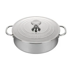 Le Creuset Stainless Steel Fry Pans are a kitchen staple for everything from searing meats to sautéing vegetables, and are expertly constructed to our uncompromising standards for long-lasting durability. The full aluminum core delivers excellent heat distribution for quick and even heating, while the satin matte stainless steel exterior resists scratches, marks and fingerprints. Designed for those who love to cook, non-reactive stainless steel is easy to use, exceptionally versatile and dishwasher-safe.