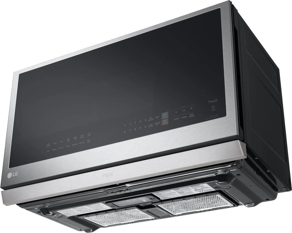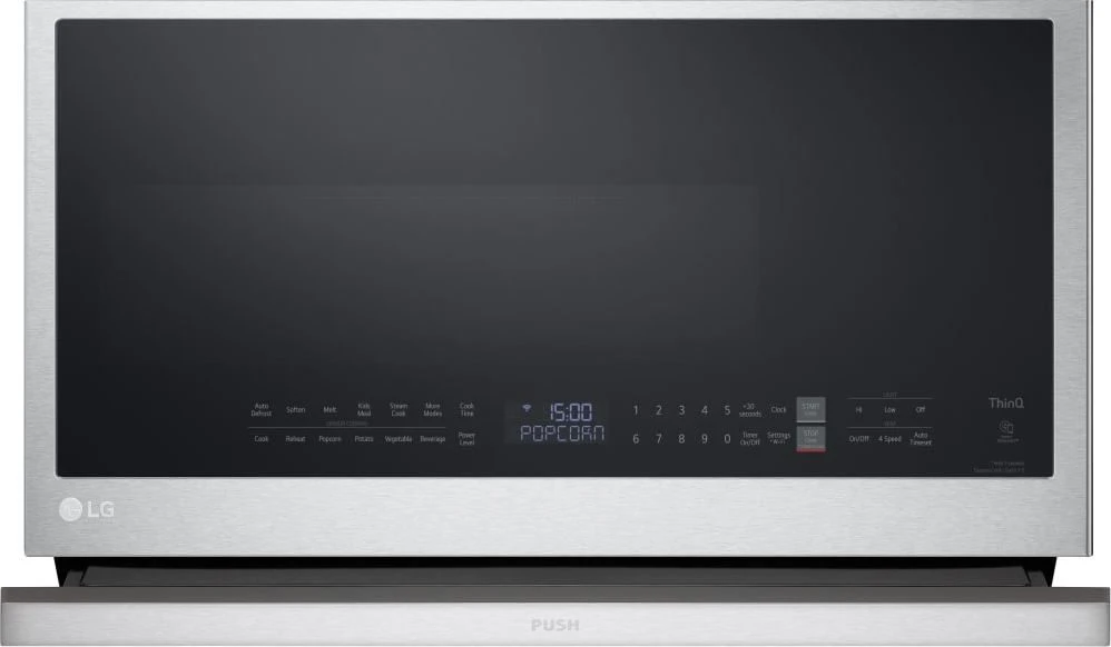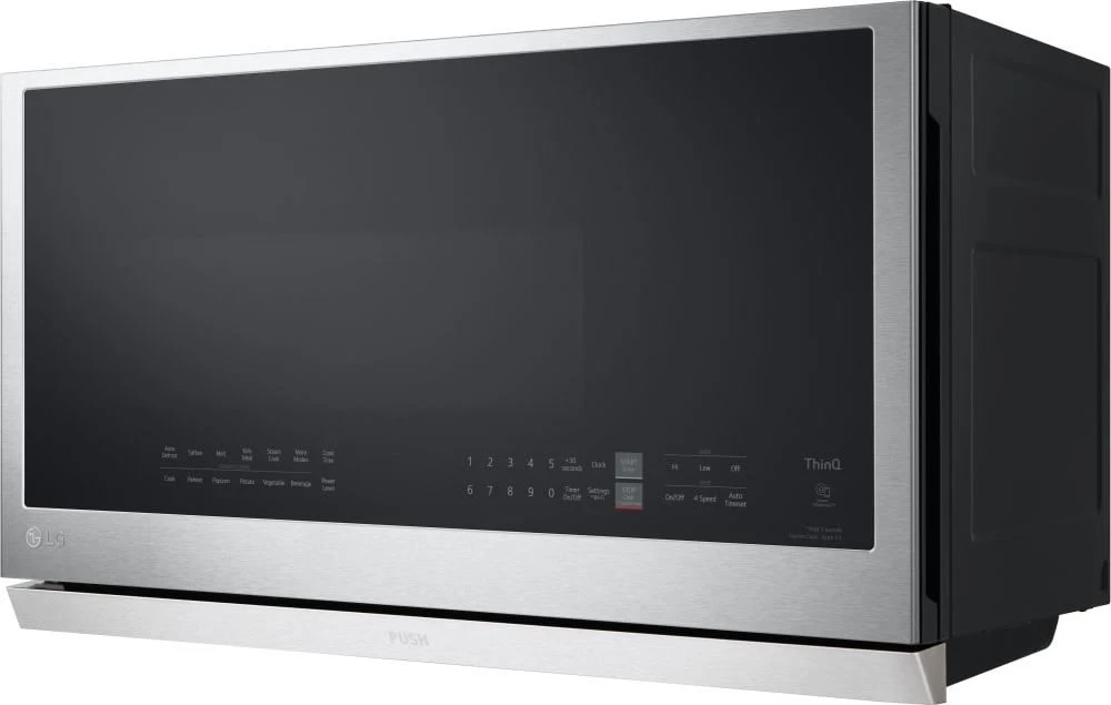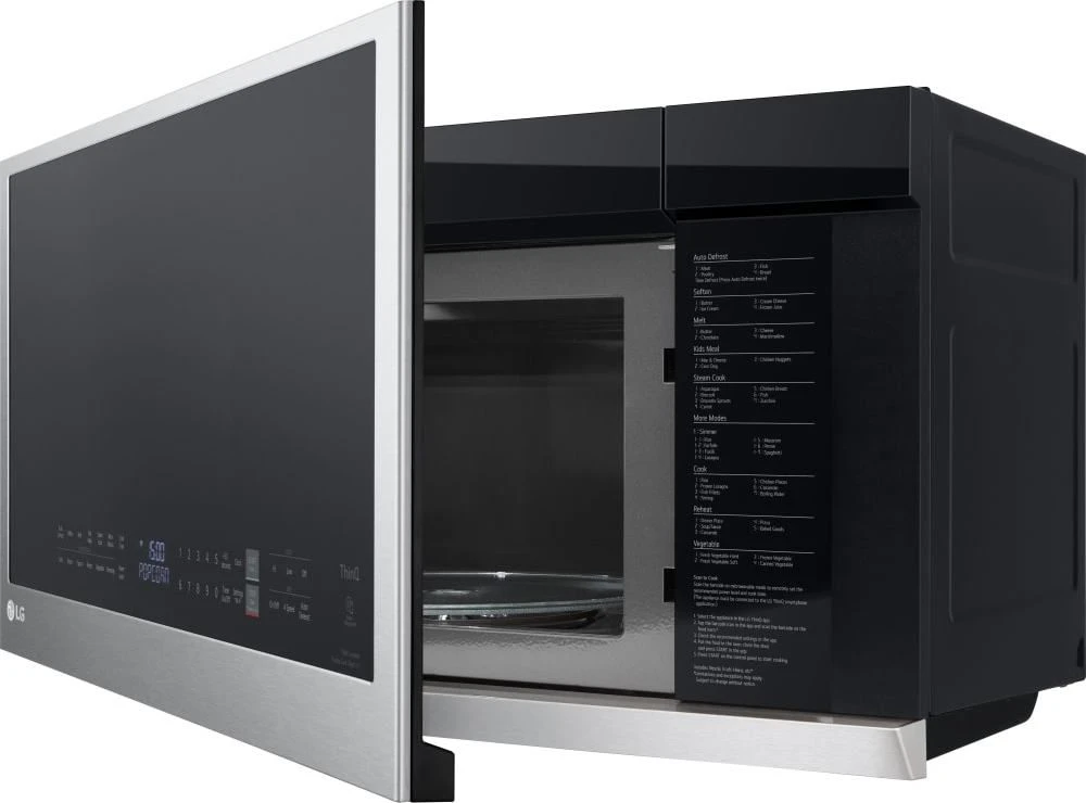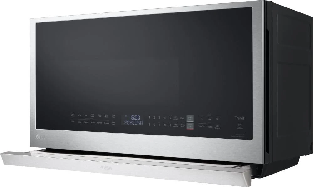 Make a statement in your kitchen with contemporary style and Smart Technology. The striking WideView™ window, integrated pocket handle, and SmoothTouch™ glass controls offer a seamless look and intuitive operation. The generous 2.1 cubic feet capacity gives you more room for larger dishes or even casserole pans. The ThinQ® app with Scan-to-Cook sends cooking instructions for ready-made meals to your microwave with just a scan of the barcode*. ExtendaVent™ 2.0 clears the air quickly with powerful ventilation over more of your cooktop’s surface area.