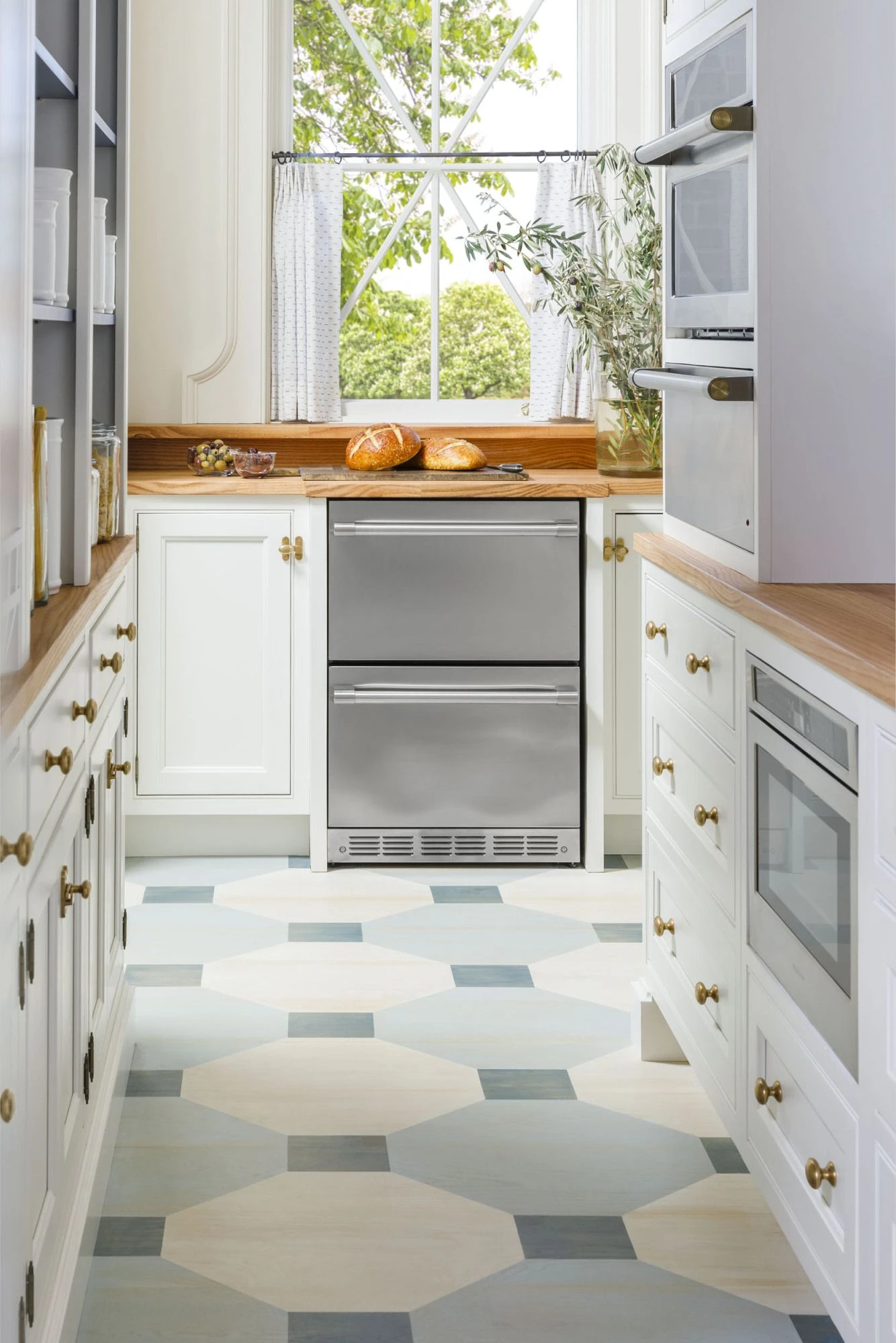 - Enables the drawer to be installed flush with cabinetry without any additional parts.