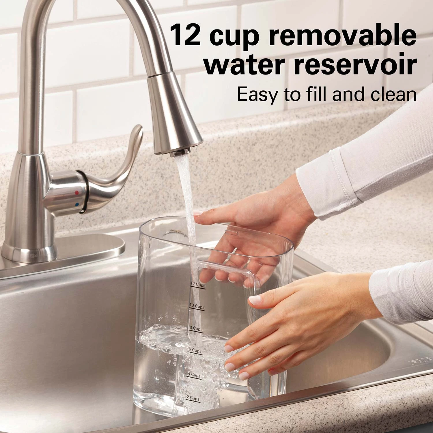 - Front-facing window lets you easily see how much coffee is left in the 12 cup coffee reservoir