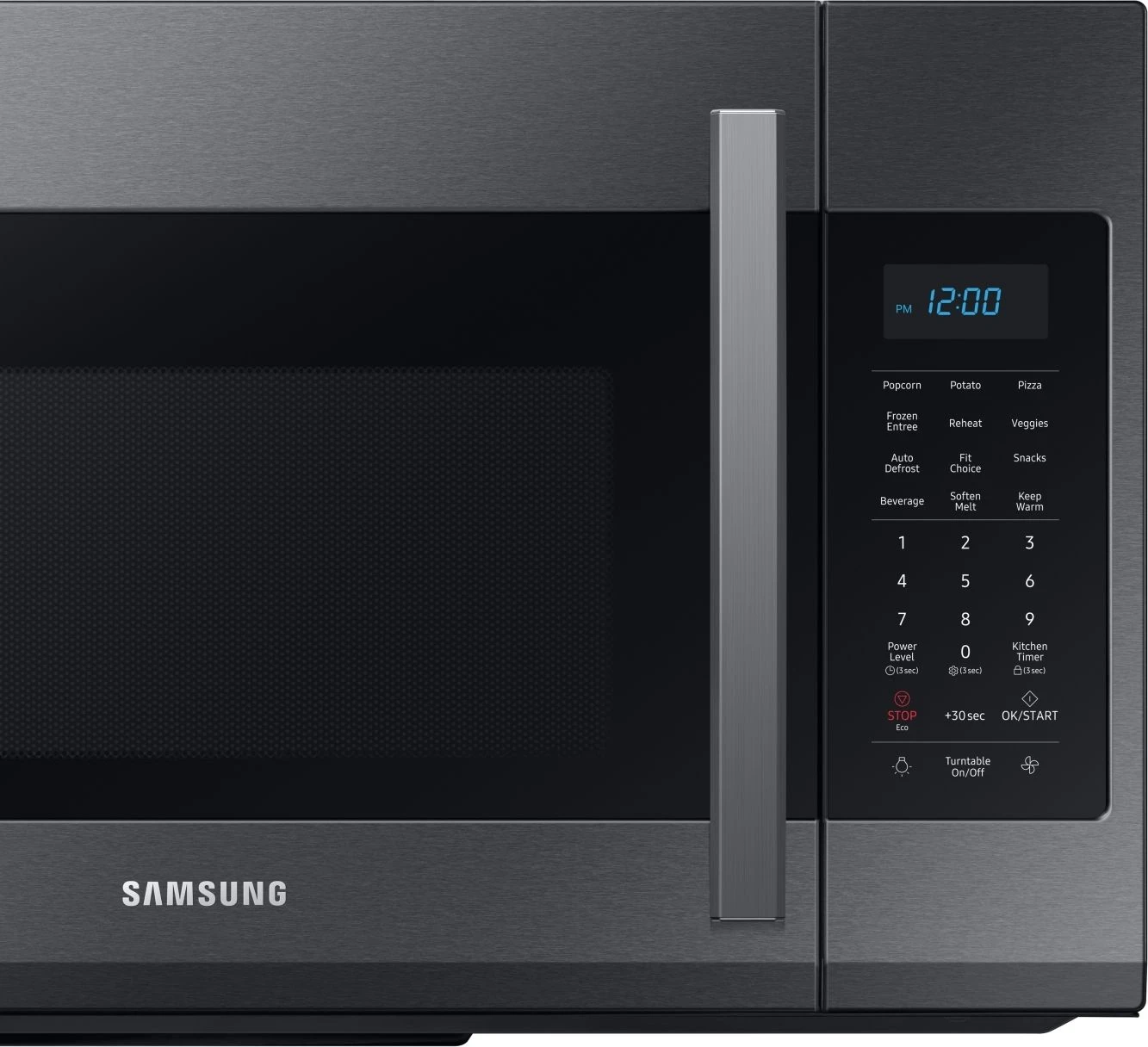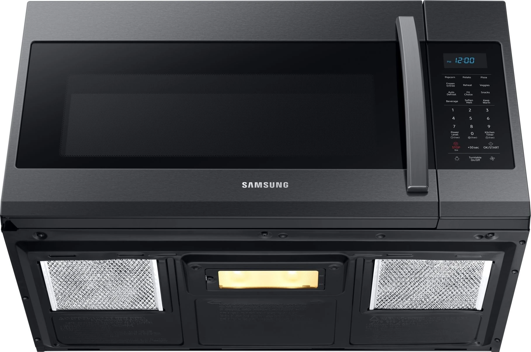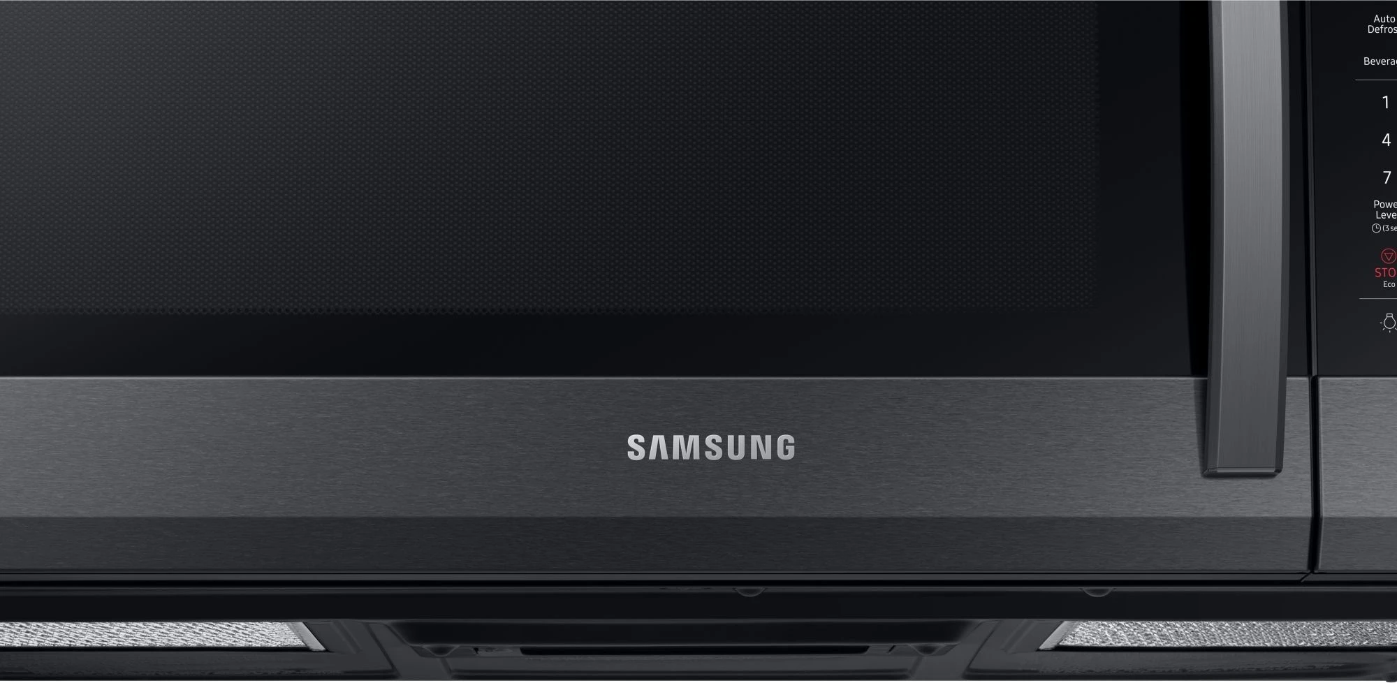 1.9 cu. ft. Over-the-Range Microwave with Sensor CookingSamsung’s new signature Over-the-Range microwave marries design and convenience while featuring a powerful 1000W cook power. The Sensor Cooking option automatically detects moisture levels in your food and determines the proper cooking time, and power level to deliver optimal results. The digital blue LED display allows you to adjust the clock, timers, Eco Mode, and power level. Performance is built in with a powerful 400 CFM Ventilation System and an expansive 1.9 cu. ft. interior that helps you prep meals quickly and effortlessly. Featuring fingerprint resistant (Not Available in Black/White).About SamsungSamsung is guided by a singular vision: to lead the digital convergence movement. They believe that through technology innovation today, they will find the solutions they need to address the challenges of tomorrow. From technology, comes opportunity – for businesses to grow, for citizens in emerging markets to prosper by tapping into the digital economy, and for people to invent new possibilities. It’s their aim to develop innovative technologies and efficient processes that create new markets, enrich people’s lives and continue to make Samsung a trusted market leader. Available at Designer Appliances.See more Samsung Over the Range Microwaves