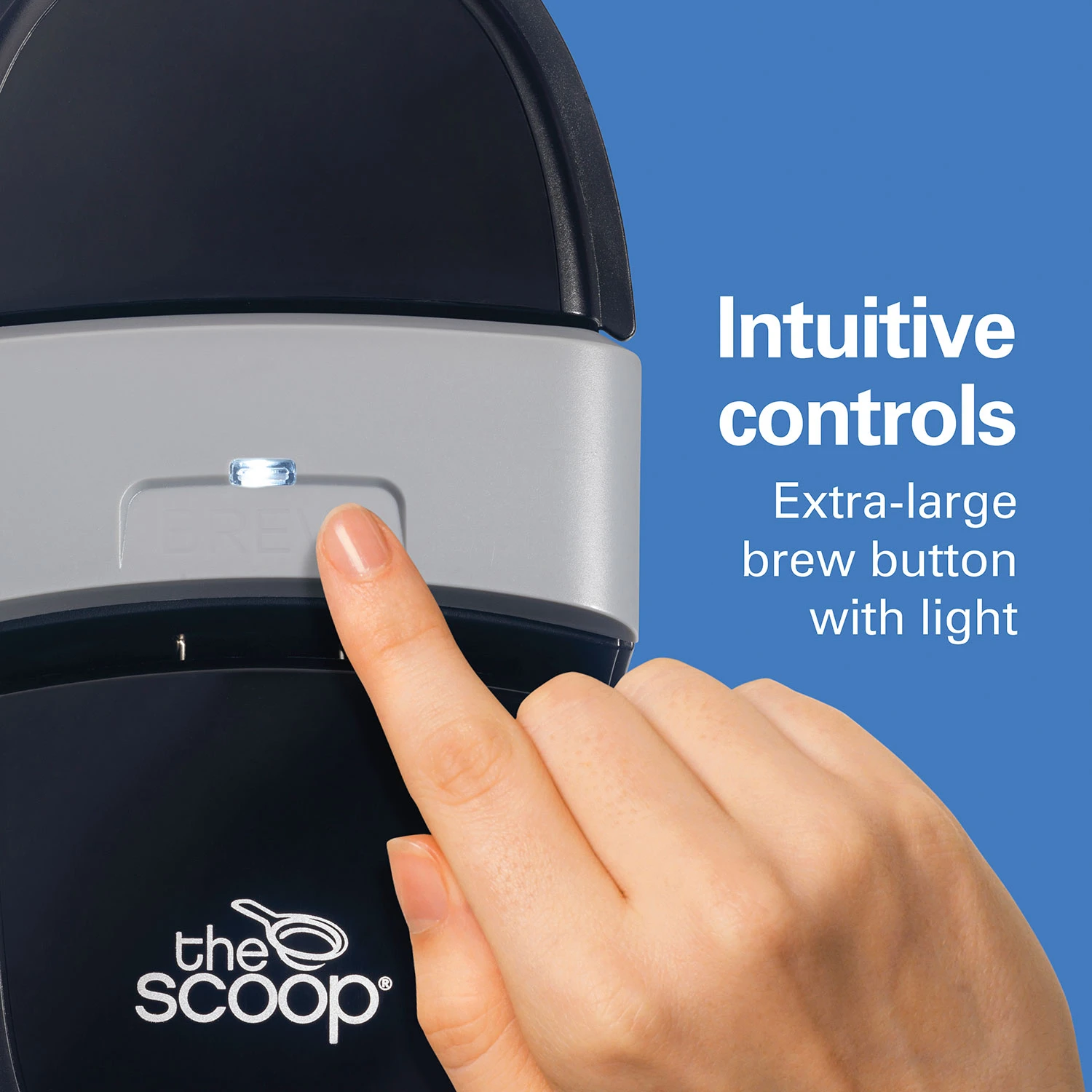 The Scoop Single-Serve Coffee Maker brews fresh, great-tasting coffee in minutes, so there’s less waiting time in the morning for that important first cup.