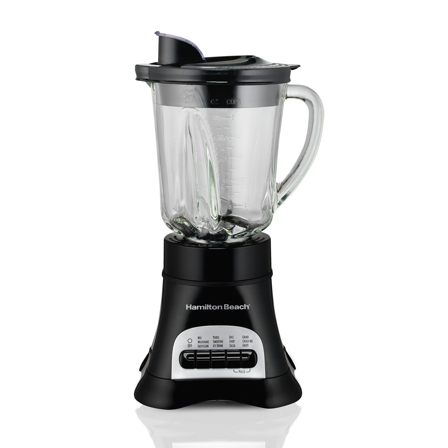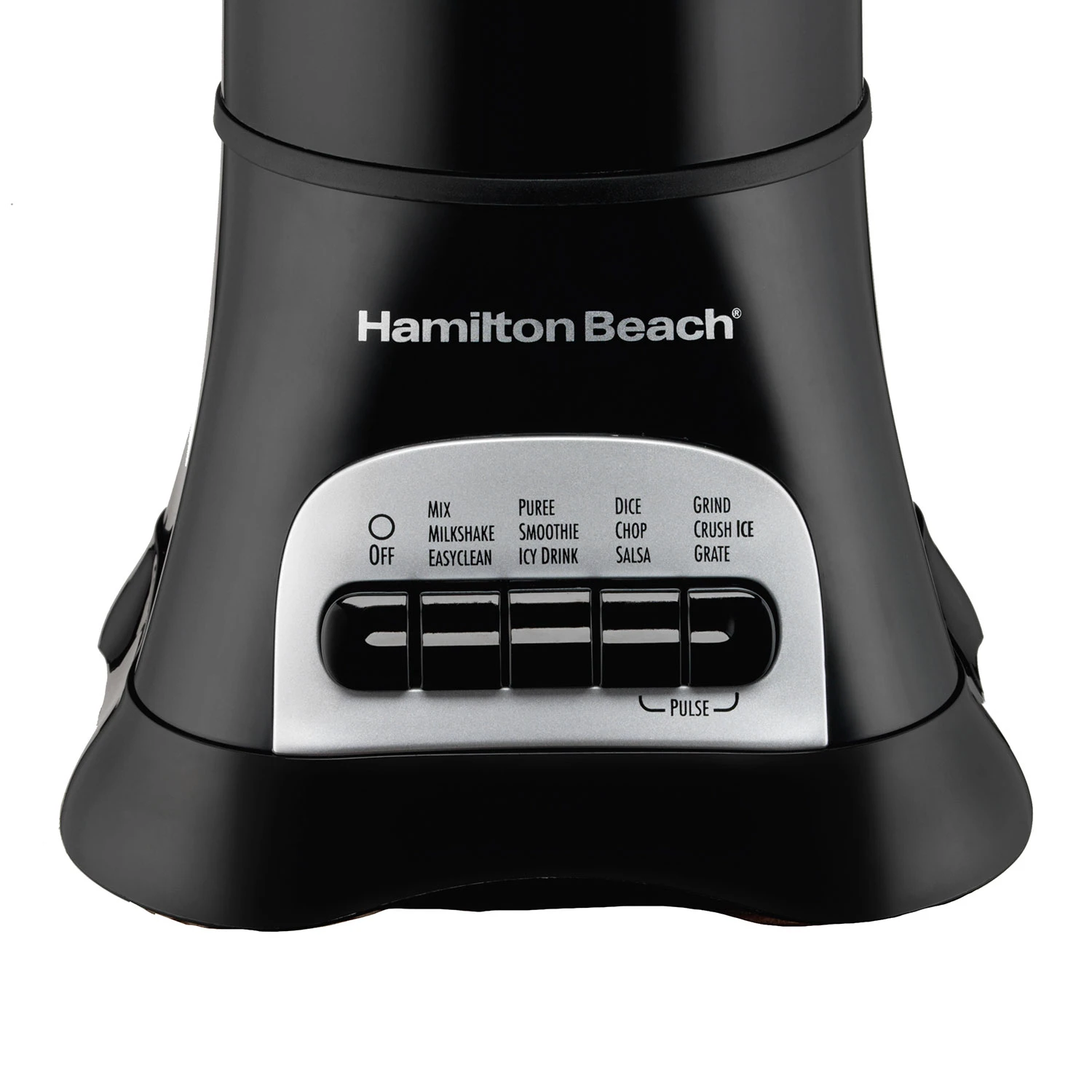 All it takes is a press of a button to get delicious results with the Hamilton Beach® Wave Crusher® Blender. Built with the patented Wave-Action® system, this blender works to continuously pull the mixture into the blades for consistently smooth results. This system, combined with stainless steel blades, makes this blender ideal for smoothies, shakes and icy drinks.