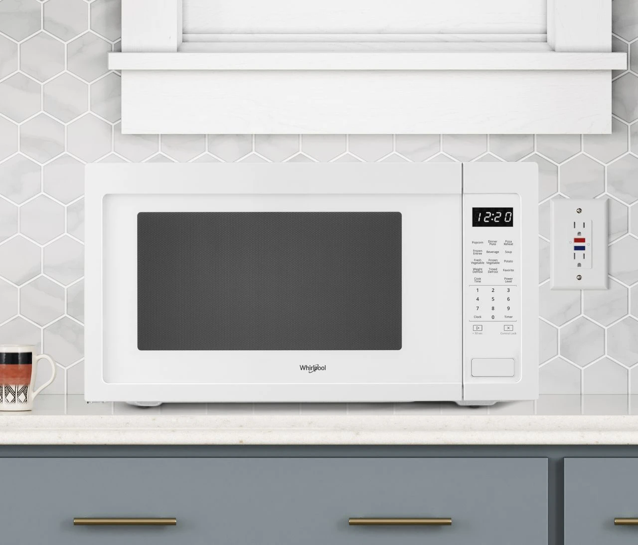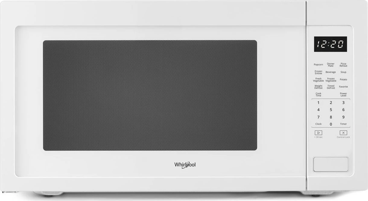 Enhance your kitchen with this countertop microwave by Whirlpool. The microwave offers 2.2 cu. ft. of capacity, giving you the freedom to cook large dishes. The sensor cooking mode automatically adjusts the cooking time and temperature as needed for your food. Use the microwave presets to achieve the perfect heat and cooking time for specific preset options. Cleaning the glass turntable is a breeze because it is dishwasher safe.