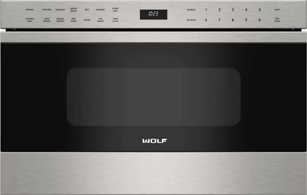 As true cooking instruments, Wolf drawer microwaves include many features that make fast meals better meals. Drawer microwaves can be installed undercounter, in a corner or in a wall of cabinetry which provides easy access to food from any angle. They are designed to match the trim style of Wolf E series ovens and can be installed in a standard or flush inset application.